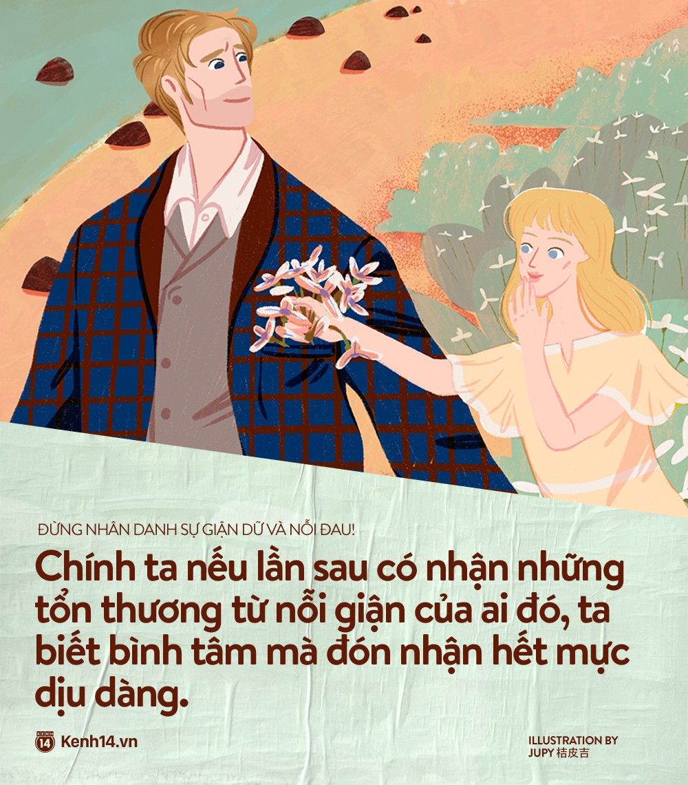 Nhưng vì ta cũng chỉ là một người bình thường như bao người bình thường khác, nên dù ta có nhận thức được những điều ấy một cách rõ ràng nhất, cũng khó có thể tránh khỏi những phút giây bồng bột mà hành động đi trước cả suy nghĩ vốn có. Nhân danh sự giận dữ và nỗi đau, chúng ta thường vô thức cho mình cái quyền làm tổn thương người khác. Giữ cho mình một cái tâm thanh thản, trước hết để hạn chế tối đa những việc làm hay lời nói tổn thương; để nếu có xảy ra rồi ta vẫn kịp nhận ra mà xoa dịu trước khi quá muộn; và để chính ta nếu lần sau có nhận những tổn thương từ nỗi giận của ai đó, ta biết bình tâm mà đón nhận hết mực dịu dàng.