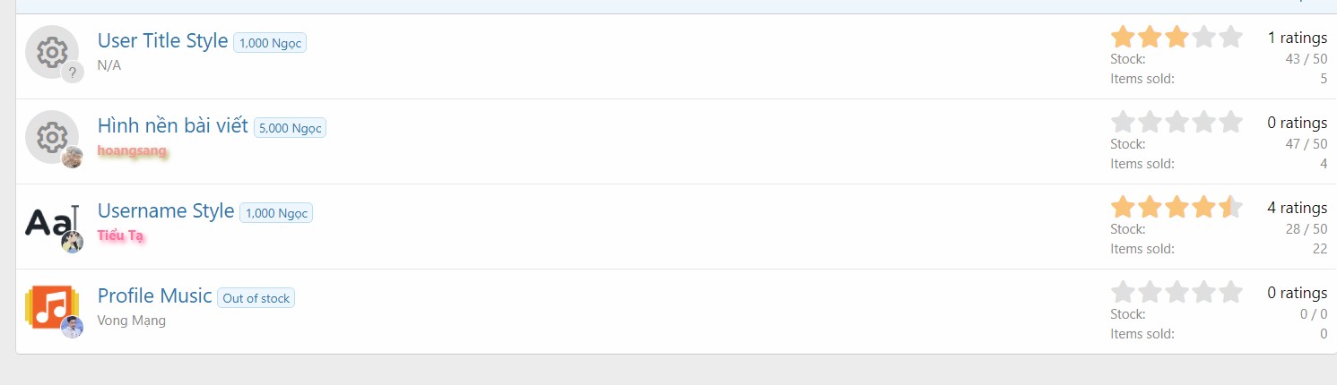 Không có ngọc. @hoangsang lão ca. Mở cho phép đổi tuvi sang ngọc đi. Giờ đổi thì mất tuvi chứ ngọc không được thêm.Mở mua màu title rồi này![]()