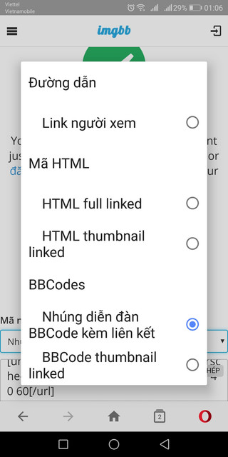 Sau khi upload xong thì muội sẽ thấy như hình dưới, trong phần "Mã nhúng" muội chọn "BBCode full", xong di chuột ra chỗ link để thấy chữ "Copy" click vào đó để copy link, hoặc muội có thể copy link bằng cách thủ công cũng được.