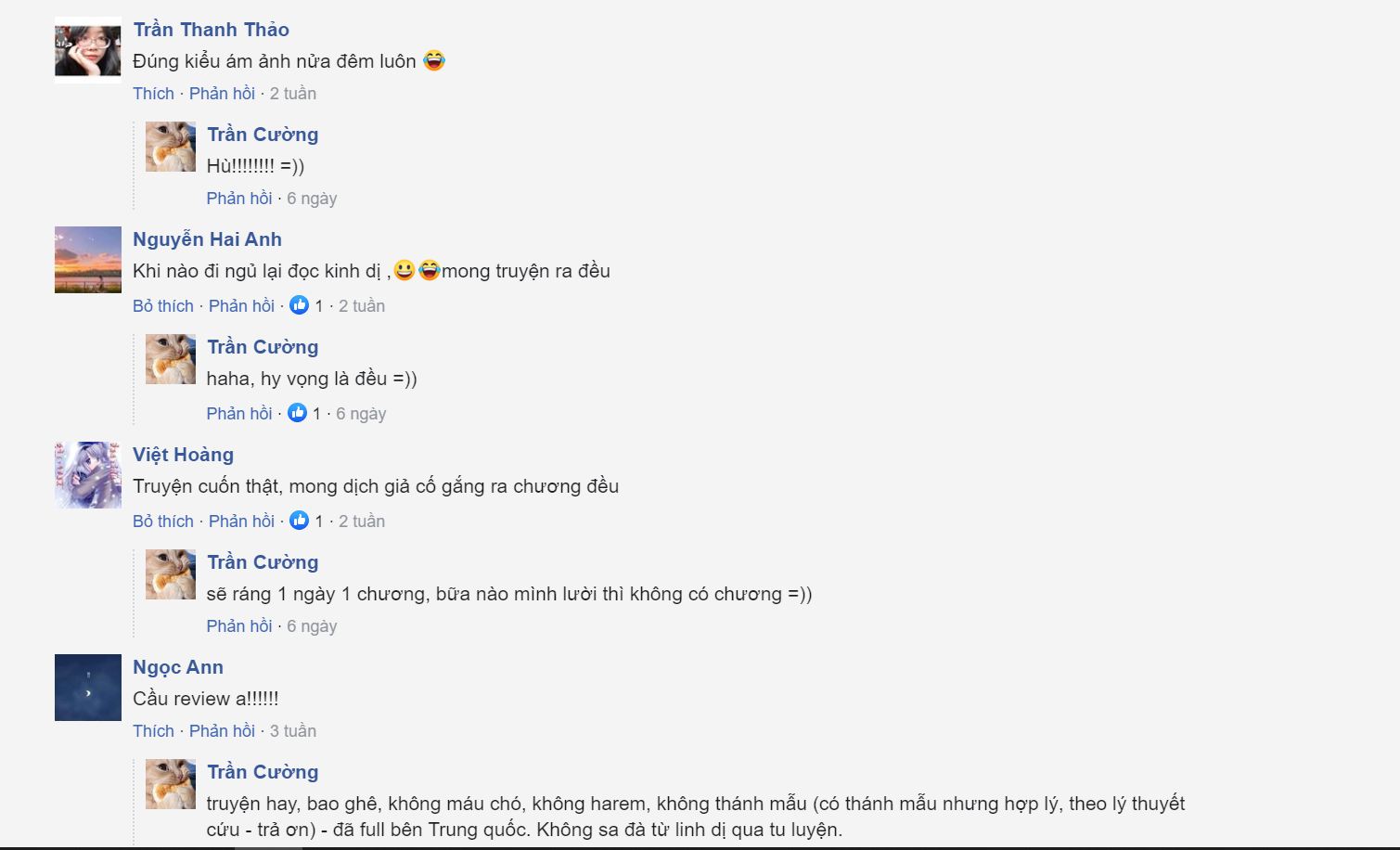 Bạn đang dịch truyện nhận được rất nhiều độc giả hỏi thăm kêu bạn bung chương các kiểu.. đó là những điều dịch giả nhận được nó đáng giá hơn ngọc rất nhiêu.