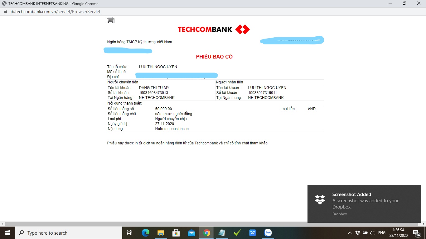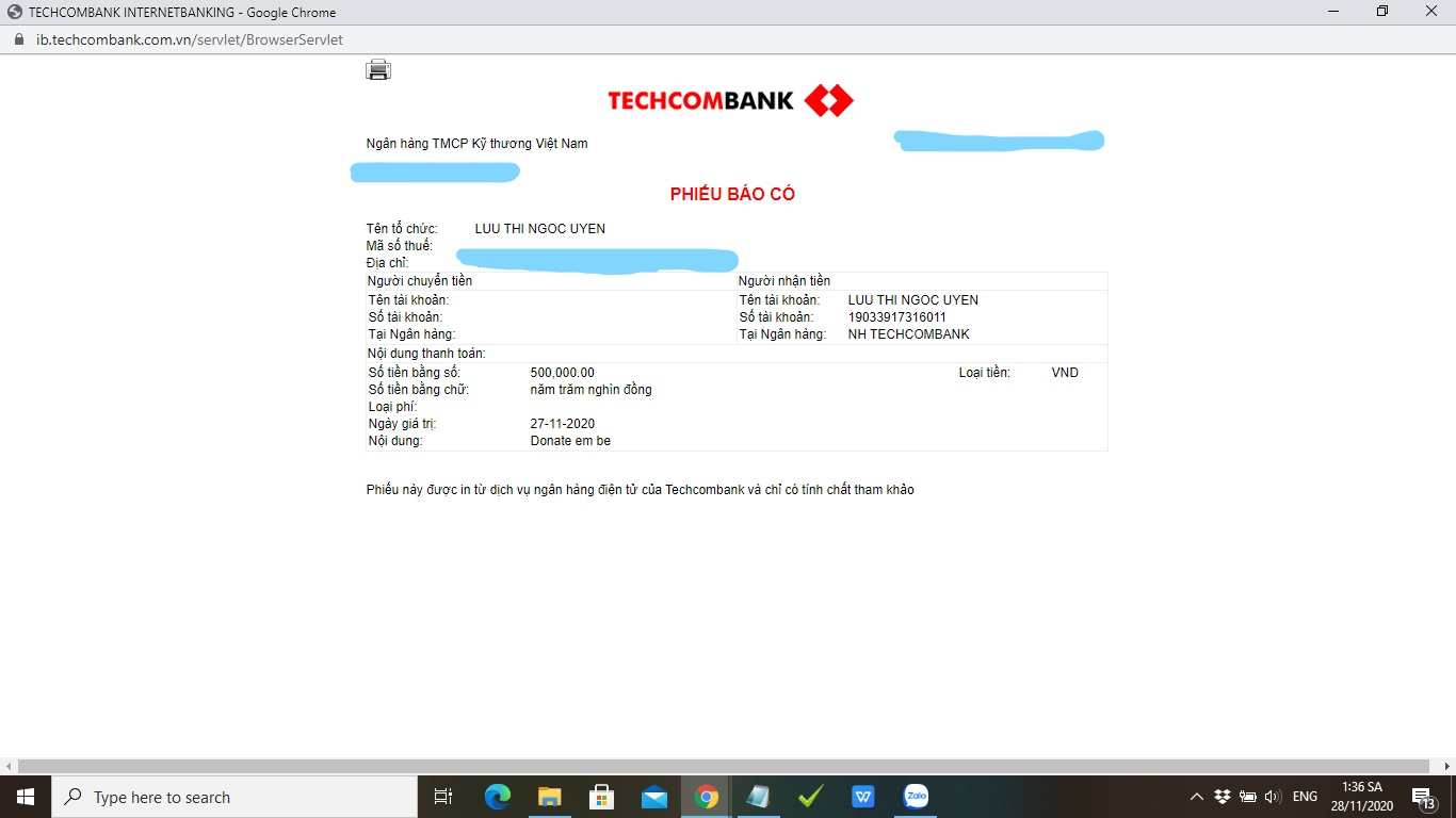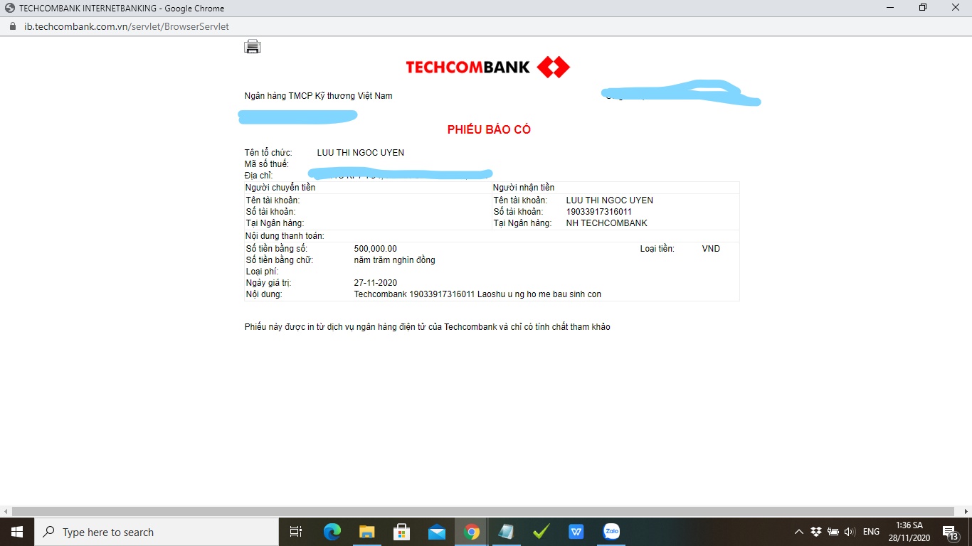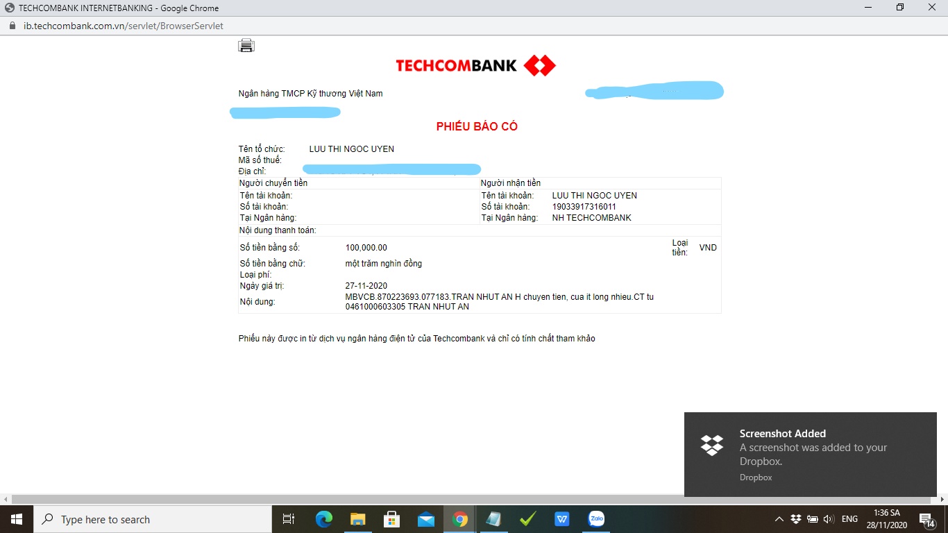 Chủ tài khoản: Luu Thi Ngoc Uyen