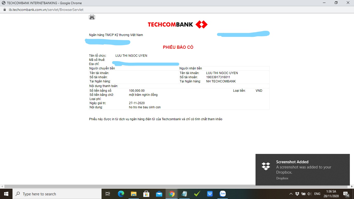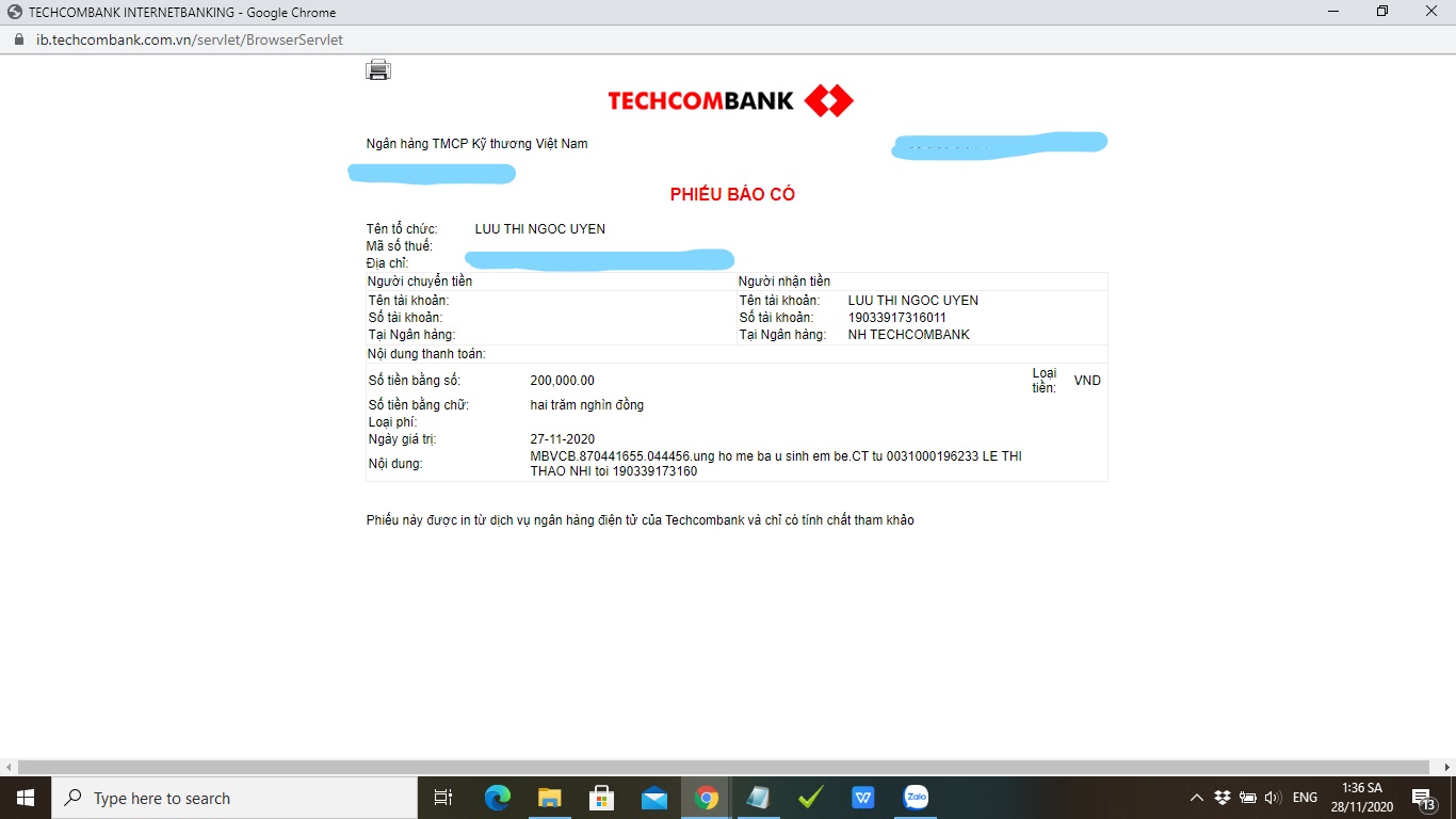 Anh chị giúp hỗ trợ chi phí sinh đẻ có thể gửi về stk sau với lời nhắn "ho tro me bau sinh con"
