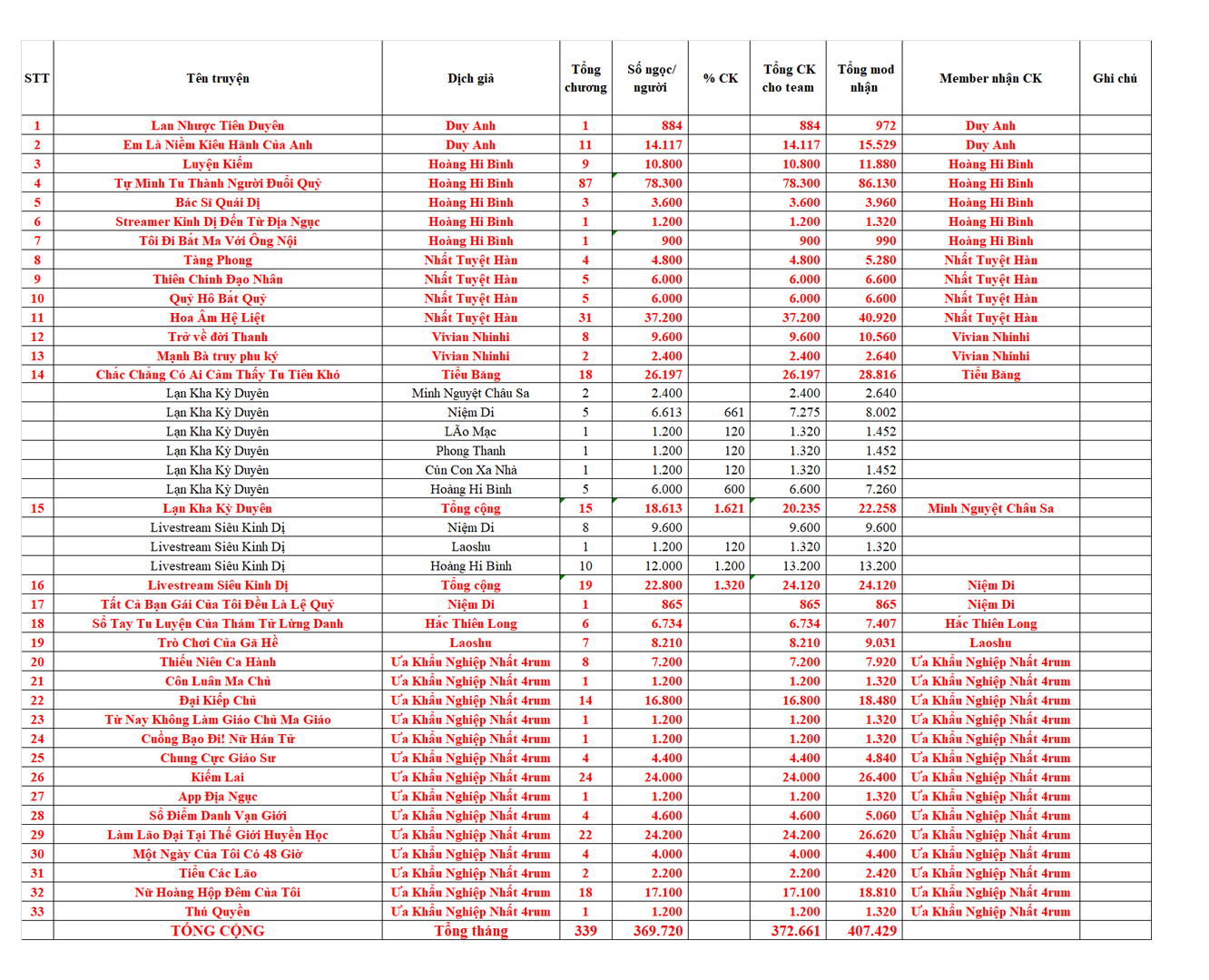 Chú Ý Báo lương truyện dịch tháng 1/2021