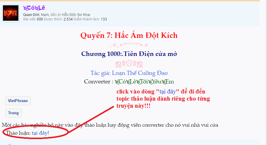 @hoangdinh05 chào bạn. Nếu bạn muốn giục giã converter làm truyện nào thì cứ vào thẳng link thảo luận của truyện ấy mà giục giã nhé.